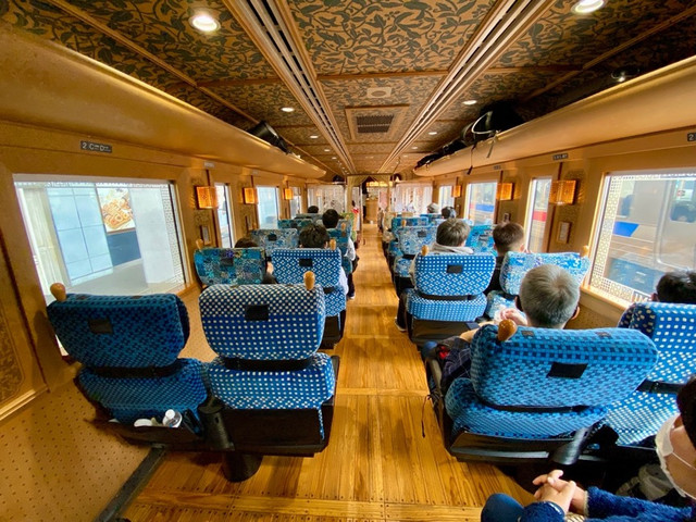 翡翠·山翡翠号的内部采用原木装潢,低调温馨。宽敞的座椅和视野开阔的车窗能够让乘客尽情欣赏窗外的风景。另外,它还与同样运行在肥萨线的伊三郎新平号相连,因此可以同时对比体验两辆观光列车内的气氛。大约花1小时40分钟就能从博多站抵达门司港站。