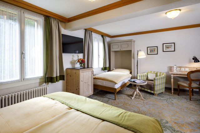 其宽敞漂亮的客房采用现代/传统瑞士木屋风格,木质家具散发着原木清香,营造出轻松舒适的度假氛围。