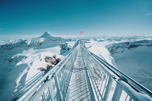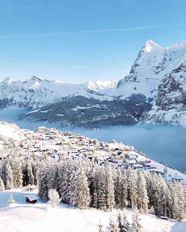 因007系列影片《女王密令》雪山打斗场面的取景而名声大噪的雪朗峰,是瑞士非常热门的冬季旅游目的地,而山脚下的美丽小镇米伦(Mürren)往往会成为理想度假选择。冬天的米伦是真正的童话小镇,绵密的积雪覆盖房顶和山峰,整个村庄静静地坐落在雪白的大地上,一片片飞舞的雪花把村子变成白色的童话世界。