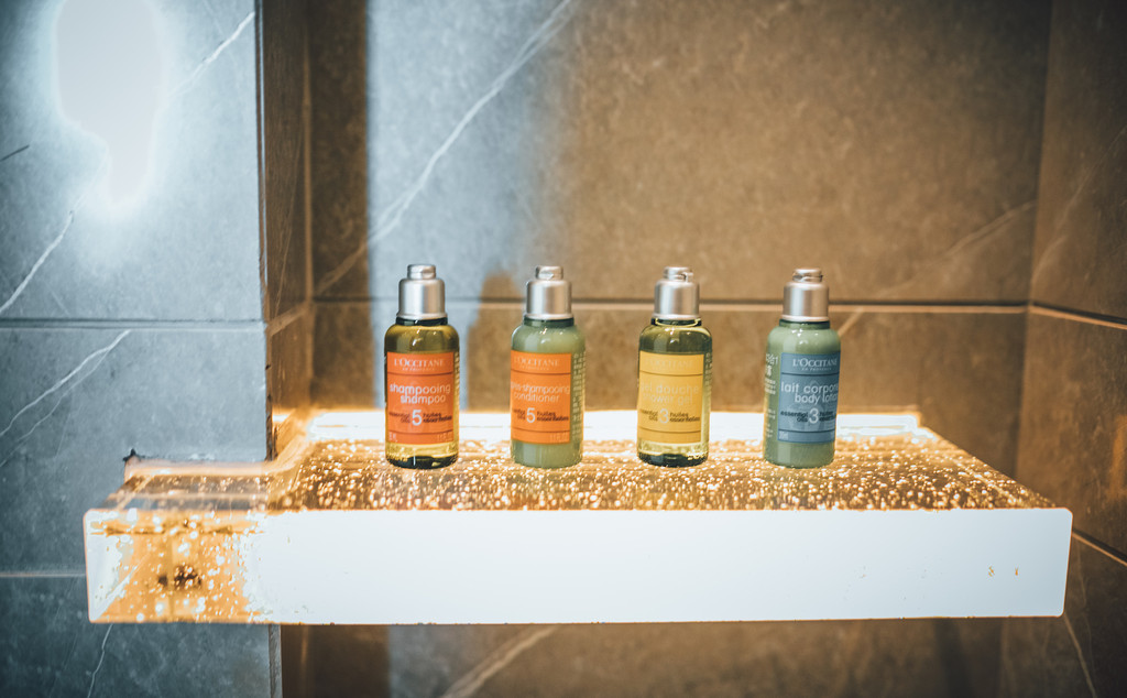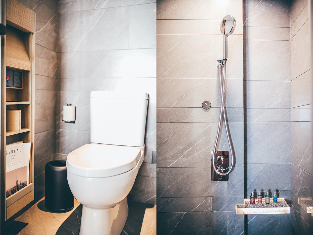 通常不会太被关注的坐便器区域,也留了酒店的小心思。除来看得见的科勒品牌,第一次看到酒店的坐便器边安装了插座,摆放了杂志,香薰,连如厕时间都充满了酒店润物细无声的人性关怀。极速出热水的淋浴设备,强劲的水压与稳定的水温,配上欧舒丹的洗浴用品,带来畅快淋漓的沐浴体验。
