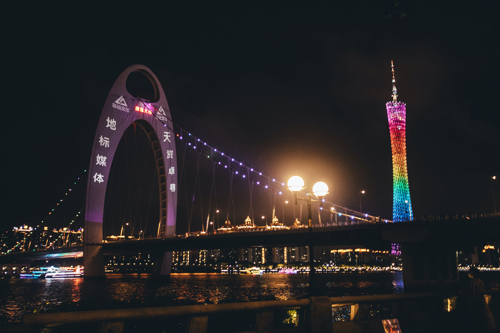 如果觉得天德街不够逛,穿条马路步行几分钟就能来到珠江边。猎德大桥下都是跳广场舞、唱歌,遛狗、夜跑的当地人;在这里欣赏桥另一头的小蛮腰,也比平时在景区欣赏更亲切动人一些。