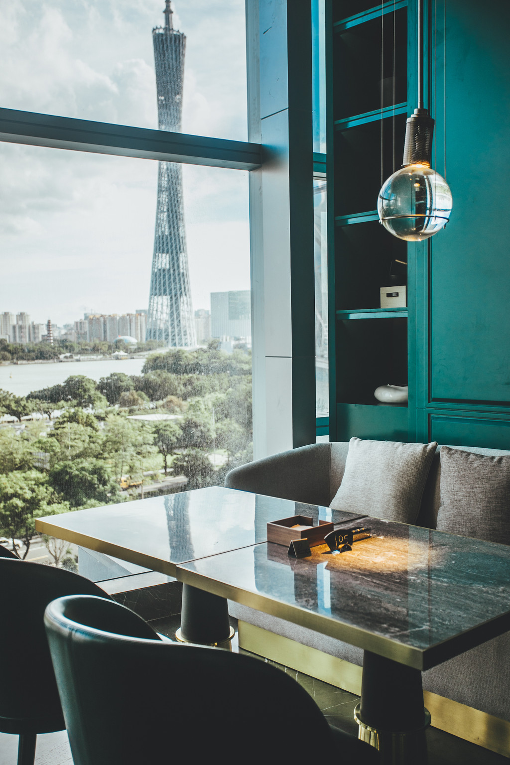 28楼前台的一侧是大堂吧,这里有各式各样适合“瘫坐”大半天的沙发座椅;既可以度假休憩,也可以商务会客。至于28楼的高空景观,似乎在广州雅致已经不足为奇了。