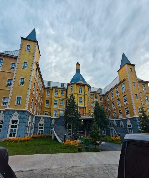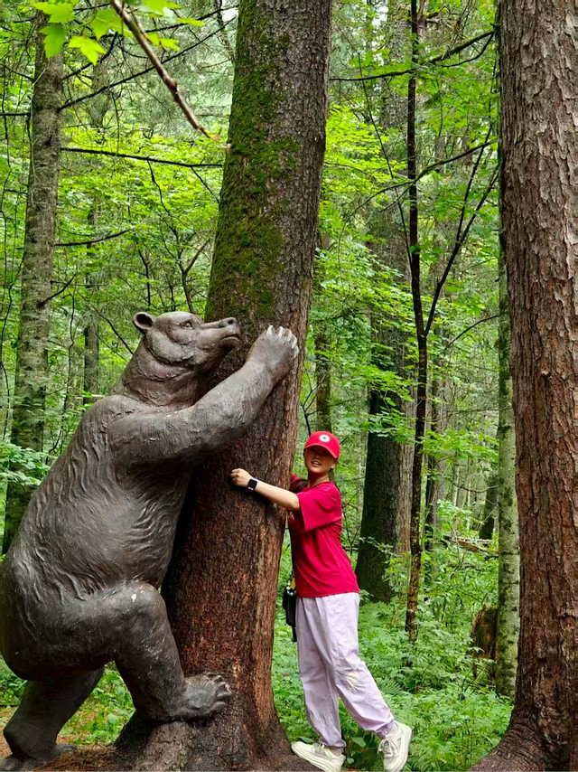 07:30 酒店自助早餐后,原定要去【升辉早市】,但大家都觉得各地早市都大同小异,不必刻意前往了,于是直接前往【五营国家森林公园】,游玩时长约 3 小时。五营国家森林公园有中国规模最大、保存最完整的红松原始森林带。首先坐观光车到达公园大门,沿着左手线路行进,一路上能看到很多可爱的花栗鼠,来这里,必打卡的就是和它们的亲密接触,这种小动物在北方森林中最常见,身手敏捷、娇小可爱,游客给它们喂瓜子,一点不怕人,吃的很投入,运气好还可以抚摸一下它们那毛绒绒滑溜溜的身体,感受大自然的野趣,开心极了(小贴士:最好带上除瓜子以外的其他坚果类食物,这样可以大大增加吸引它们的机会;花栗鼠很多,不用扎堆,自己找见去挑逗它们更有意思)。走不多远就能看到一列复古的森林火车,名曰“少奇号”,拍照蛮有氛围感。从少奇号出发,就开启了一段徒步旅程,沿着木栈道漫步,大口呼吸着纯净的空气,全身心都得到了放松(这里负氧离子高达7000+,是一个洗肺的好场所),沿途有很多高大挺拔的红松,几个人也搂不过来,一直走到园中园站,乘坐景区环保处前往下一个景点-森林浴场,到达森林浴场后,需要登台阶向上攀爬,再经过响水溪、观音山,最后回到乘车点,这条路线大约需要2个小时左右,我们一家都不想爬山,所以在山脚下稍事休息,补充了一下体力就继续乘车前往下一个景点-天赐湖,天赐湖旁边有一个呐喊泉,10元3分钟,大声喊可以喊出喷泉。由于体力比较疲乏,所以我们也没有着重在此停留,从天赐湖乘坐环保处返回景区正面,结束了本次旅程。中午司机师傅带我们到了一个吃饭点比较集中的地方,我们在这里吃到了非常好吃的朝鲜冷面(正不正宗不重要,关键合我们的胃口)。稍事休息后,下午15:00 左右前往【汤旺河林海奇石景区】,游玩时长约3小时。 汤旺河林海奇石景区是黑龙江省伊春市的国家5A级旅游景区,以花岗岩石林地貌和原始森林生态为特色,这个景区建设的非常好,景区内绿树成荫,松柏挺拔,仿佛置身于一个天然氧吧;奇石林立,形态各异,让人不禁感叹大自然的鬼斧神工。同样还是乘坐观光车到达终点,然后往回逛,相比上午的五营森林公园,这里的设施更加完备,还是沿着石阶一路向上,路两旁不时会有花栗鼠蹦出来寻找食物,这里的花栗鼠似乎更喜欢花生多一些,看来瓜子吃多了也腻啊!走不多久便到达了一个景点:一线天,据说最窄处仅35厘米,需侧身通过,游客穿行其间,既能感受到大自然的伟力,也能体验到探险的乐趣,某些不信邪的游客通过时就被卡在中间,进退不得,很是尴尬;而穿过的则会大喊上一句:“看来我还是很瘦的”。汤旺河景区很大,如果全部逛完需要很大耐力,我们还是选了最常规的一条线路,沿着氧吧长廊往山下走。沿着长廊走,可以听到潺潺的溪水声和鸟鸣声交织成美妙的乐章,感受大自然的和谐与宁静,休息中再吃上一根景区特产蓝莓冰棍,真是惬意。我们沿着木头栈道边走边拍照,这里的人工景点也很出片,到小瀑布处我们实在走不动了,走出栈道去路边站台乘坐观光车返回起点。至此今日游览结束,司机师傅带我们到了酒店安排好住宿,然后又带着我们去吃了晚饭(依旧是朝鲜冷面),之后返回酒店休息。在这里,不得不提一下今晚我们的住宿酒店:汤旺河亚欧巄城堡酒店,总体来说,这次在亚欧巄城堡酒店的住宿体验相当不错,这家酒店坐落于汤旺河国家公园旁边,就像是森林里的一座梦幻城堡,四周环绕着郁郁葱葱的大树,呼吸间都是满满的富氧离子,进入酒店大堂仿佛进入了中世纪的罗马,骑士、盔甲、壁炉、带角驯鹿的头和弓箭,甚至天花板绘制的也是西方诸神的画像,我们入住的是酒店的古典欧式房间,每个房间的标识都是古罗马神话中的人物,房间内部装修中西合璧,细节处无不体现出设计者的智慧,房间超级大,尤其挑高很高,接近4米,两张1.8米的大床,床品柔软而舒适,晨起在缥缈的薄雾中,很像唐顿庄园那种感觉。暑期旺季一晚的价格不到700元,性价比还是很高的。
