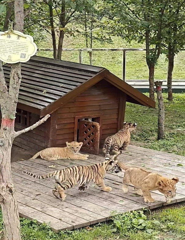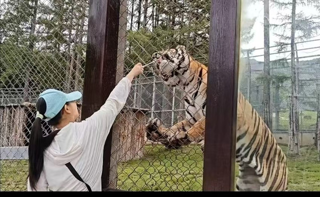 清晨在鸟语花香中醒来,推开窗户,映入眼帘的是窗外那一捧捧迎着朝霞绽放的小野花,在阳关的映衬下格外夺目,似乎我们没有住在房间里,而是露营在了开满鲜花的大自然。老板开车直接把我们送到了虎园,因为来的较早,游客还不算多,我们马上寄存了行李,然后检票入园,夏天去虎园一定要赶早,早起的老虎饥肠辘辘,特别适合互动投喂,一旦温度起来太热就去阴凉处午休了(和我们山西人一个习惯)。我们先坐通勤车(有铁栅栏包围)到达一处老虎聚集地观察,车旁围着几只未成年老虎正在争食打架,甚是热闹,车上售票员和我们推销了投喂的肉串,我买了50元的肉段,准备带孩子和老虎们互动一下。车子到达终点后,我们凭票去换上肉,然后开始了“惊心动魄”的互动之旅,所有的成年虎都被圈在钢化玻璃围成的小园子内,每个园子会有3-4只老虎,由上而下会有几个投喂口,我们先大概溜了一圈,等大家把手里的肉扔的差不多了,我们观察到有几只老虎蓄势待待,张牙舞爪了,然后走到它们身边,夹上肉挑逗,等它们口水流的不断舔舐玻璃的时候再投喂给它,互动效果非常好,也见识到了老虎的威力,第一次这么近距离观察它们,舌头居然都有倒刺,这要舔在人身上,后果可想而知,后来还喂了两只狮虎兽,50块很快喂完了(温馨提示:一定要留几块肉喂后面的黑瞎子,互动更出彩)。打算往山下走,正好碰到饲养员阿姨带着刚出生不久的小老虎和小狮子出来放风,要不说啥动物也是小时候可耐啊,一群萌娃在那里打打闹闹,让人们看的乐不可支,此刻虎头虎脑也终于具象化了。带着依依不舍的心情离开了小可爱们,我们沿着下山的路往回走,顺带看了黑瞎子园和百鸟园,路边的孔雀,鹦鹉和柯尔鸭都可以互动。可怜的孔雀和人们互动的快秃了,一开屏也是稀稀拉拉的几根,像极了本人的头顶,瞬间有种同病相怜的感脚!下山的路很快,其实入园可以不用坐公共交通,走上山也没多远,路边还有一些互动点,坐车就完美错过了。出了园我们找了家饭店,依旧是筋饼,这次学乖了,点了一份菜,刚刚好。吃完饭步行至车站等车,13:35分坐上了回哈尔滨的动车,15:06到达哈尔滨站,打车回到酒店休息(哈尔滨站还是蛮有特点的,它是纯欧式建筑风格的站房,还原了百年哈尔滨站的历史风貌。钢铁艺术和巴洛克风格结合,很像哈利波特系列中的魔幻场景,也是游客抵达哈尔滨后的一个网红打卡地)。