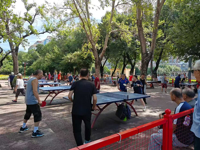 今日份主打一个休闲,这就是自由行的益处,不用赶时间。来之前关注过一个哈尔滨的乒乓球主播,得知他经常在儿童公园直播,加上孩子一直在打乒乓球,所以就想趁此机会和他交流一下,晨起吃了早饭就打了个滴滴直达儿童公园,虽然叫儿童公园,可锻炼身体的基本都是中老年人,不过很多设施都是为儿童准备的,像小火车,大象滑梯等等。让我们惊喜的是,这个公园里有很多花栗鼠,也很亲人,我们拿出随身带的小零食一路投喂,甚是开心。经过路人指点,我们找到了打乒乓球的地方,打球的人很多,各个年龄段的都有,水平也参差不齐,但氛围很好,也很友好,得知我们是来交流的,马上有球友就让出位置,让我们先上,但是来时匆忙,忘了带球拍,球友又拿出他的备用拍子让我们试手,不得不说,哈尔滨的市民还是很热情友好的,不过不巧的是,我关注那个主播今天没来,有些遗憾,玩了一会儿,看着时间也差不多了,我们就和球友们告别,期待下次再来交流吧。由于离火车发车还有一段时间,我们决定找个地方先吃午饭,搜到西站附近有一个购物广场,叫西城红场,据说是本地人经常光顾的场所,直接打车到达目的地,西城红场距离哈西客站800米,其前身为哈尔滨机联机械厂旧址,保留四幢包豪斯风格老厂房,传承“蚂蚁啃骨头”工业精神遗产,所以里面有很多蚂蚁的装饰,由于时间紧,我们只是匆忙在负一层吃了个饭,没有逛,后来我们离开哈尔滨之前还专门来逛了逛,还是挺有特点的。