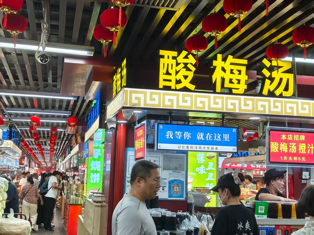 早上乘坐哈尔滨西-沈阳北高铁到达沈阳,耗时2个小时多点,出站乘坐地铁至预订酒店(地铁口),因为来的早还没有合适房间腾出,我们就把行李寄存在酒店前台,然后打车前往西塔美食街,这条街是东北三省除朝鲜族自治区域外最大的朝鲜族聚居区,街道两侧聚集了许多经营辣白菜、米酒、泡菜、鱼饼、打糕、寿司、炸鸡等朝鲜族特色美食的商铺,味道都差不多,如果不知道去哪家,那就根据网上的攻略去打卡那几家网红店铺即可。(小贴士:晚上来更出片)。据说,现在沈阳土著更倾向于去苏家屯满融村吃更正宗的朝鲜菜。我们漫无目的随便逛了一圈后就打车去了沈阳的中街:中国第一条商业步行街,从地铁中街站开始,漫步中街步行街,和大多数旅游城市的步行街一样,商铺林立,各种小吃的吆喝声此起彼伏,在这里我们吃到了沈阳的特产:鸡架,19.9一个,其实这个物价在旅游城市不算贵,直到我们在大东副食看到了10元2个的鸡架,味道相差无几。继续前行发现一处很东北的建筑,走进一看:刘老根大舞台,本想体验一下东北的二人转表演,但奈何时间有限就作罢了。前行不多远左拐就到了沈阳故宫了。可正好赶上了故宫修缮,不开放,不远的红墙绿瓦下,一水儿拍照的格格和阿哥们,甚是热闹。不过和北京故宫相比,沈阳故宫更像是自建房,北京故宫则相当于改善型住房了。由于张学良大帅府游客太多,我们也不太感兴趣,就不做打算了,我们沿着故宫一直往前走就到了大东副食市场,据说,大东副食才是沈阳本地人的美食天堂,里面有各种东北特色食品,如酸梅汤、宫廷金丝饼、蟹黄酥、八旗手工肠、四喜丸子(超大)、大列巴等各种熟食,日均客流量超2万多人次,关键价格很东北(实惠)。我们吃了几个小吃已经吃饱了,孩子还想吃心心念念的四喜丸子,奈何肚子不给力,装不下了,只能带着些许遗憾出门打车回到酒店。正好我们居住的酒店下面就是彩电塔夜市,夜幕降临,彩电塔夜市热闹开场,这里汇聚了来自天南海北的美食佳肴,有经典的炸串、铁板烧、烀饼等,还有各种新奇的小吃种类,摊主们热情洋溢的吆喝声与升腾的香气交织成一幅动人的画卷。若你踏足沈阳,渴望探寻那最正宗、最贴近生活、最富市井气息的沈阳特色,那么彩电塔夜市无疑是众多老沈阳人的首选推荐。我们随着人流走到头,找到了一家面馆:老四季,没想到,真香!据说鸡架+抻面,是沈阳人的“灵魂CP”,5块钱一碗的鸡汤面,性价比直接拉满,8块钱的鸡架,啃起来超解压,本地人给的吃法:辣椒油和醋是灵魂,浇上一勺红油,再滴点醋,酸辣开胃,越嚼越香,服务嘛,基本没有,服务员只负责收盘子,自个儿排队取餐,毕竟来这里,吃的是口味和情怀,要的就是“自己动手,丰衣足食”的市井感,这才对味儿。吃完饭再次经过夜市回酒店,经不住诱惑,又买了土豆泥炒焖子、大油边,回到酒店配上本地特色饮品八王寺大白梨,吃的那叫一个香,看来在沈阳减肥是不可能的了。
