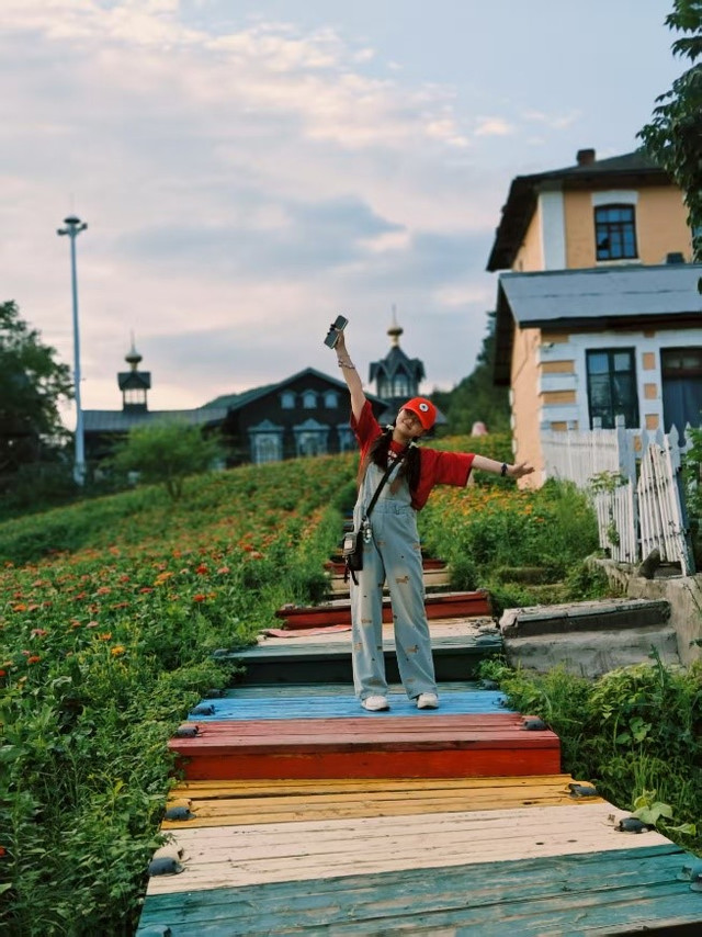 中午12:14分,我们出发前往牡丹江市的横道河子镇,哈尔滨距离横道河子不远,一个多小时就到达了,之所以选择这个目的地是横道河子是有名的避暑胜地,更为重要的是横道河子东北虎林园是全球最大的东北虎繁育基地,有500-600头东北虎,游客可乘笼车进入野化训练区近距离观察老虎,还可以通过投喂口参与投喂互动。到达横道河子站后,我们马上联系了民宿的老板,老板立马开车来接我们,由于是下午到达,老板建议我们先去镇上的中东铁路机车库博物馆,作为横道河子的标志性景点之一,这里保存了中东铁路的历史遗迹,包括新中国毛主席曾经坐过的机车和车厢。这里也是全国最大的扇形蒸汽机车库,共有 15 个车库门,造型美观,风格独特。如今改造成中东铁路博物馆分馆,免费参观,适合拍摄蒸汽朋克风照片。从机车库出来,我们买了两瓶原生蓝莓汁,沿着石板路漫步至俄罗斯老街,这里保存了大量的俄式老房子,这些老屋的墙体较厚,房门高约两米,房顶上还设置了老式烟囱,既美观又实用。老街的尽头是圣母进堂教堂,这是中东铁路沿线保存最为完好的东正教堂之一。教堂的洋葱顶、精美的纹饰雕刻以及原木刻楞结构都彰显了俄罗斯早期建筑风格,这里的油画村艺术街区果真如油画般,非常适合拍照打卡,非常的出片,我们到达时已经晚了,很多油画店都关门了,也是一件憾事。中间我们还打卡了横道河子火车站,一所百年木质车站,拥有全国唯一木制站台。夏季可乘坐复古观光小火车,体验怀旧旅程。K7091 次绿皮车在此经停,适合感受慢火车生活。逛了一圈后天色已见黑,我们就找了一家饭店,品尝了一下本地的特色美食:筋饼,它的形状和北京烤鸭的饼一样,但却大了很多,薄而筋道,可卷各种炒菜,原来一直听说东北菜量大实惠,总没有什么概念,这次终于体会到了,我们3个人点了2盘菜,一盘大酱鸡蛋怕不是放了10个鸡蛋,炒合菜也是堆到快冒尖了,最后愣是吃不动了,加上饮料和主食,最后花费不到50,终于体会到“东北币”的魅力了(温馨提示:东北菜口味偏重,建议提前和服务员沟通一下,炒菜要清淡一些)。吃完饭我们遛弯回到了住处,这晚的吉尔名宿是此次哈尔滨之行住宿最大的亮点,也是我们此次哈尔滨之旅性价比最高的一次住宿了。我们住的房型是百年俄式建筑豪华家庭房。民宿是新装修的,俄罗斯风格,房间宽敞明亮,干净舒适,尤其得夸一下床品,床垫和被褥都十分干净舒适,卫生间干湿分离,有一次性洗浴用品,出热水很快,电视投影超大超清晰,虽然房间内有空调,但几乎用不上,晚上还得盖被子,尤其民宿老板,服务周到热情,细致体贴,从接站到送客全程一站式服务,值得表扬,尤其价格美丽,在这个暑期旺季,我们住的家庭房166RMB/晚,对比其他城市的住宿,还要什么bicycle!