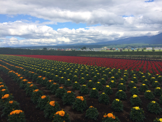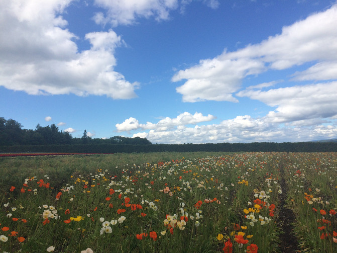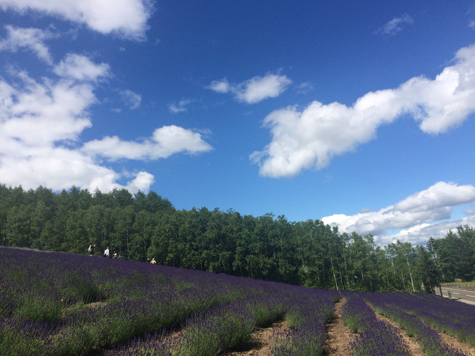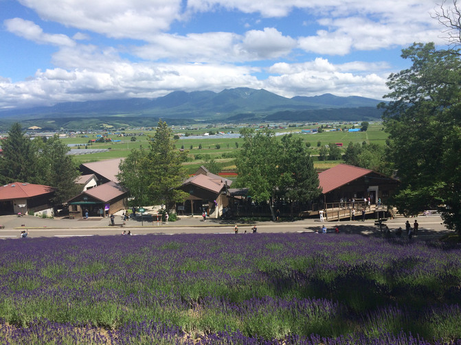 扑天盖地的花朵充斥着人们的视野,站在田间还能远望间北海道有名的大雪山十胜岳连峰,山上的白雪还没完全融化。富良野独特的优势在于其视野的开阔,举目远眺是连绵的山丘和山脚下酷似北欧风光的农田,确实心旷神怡。