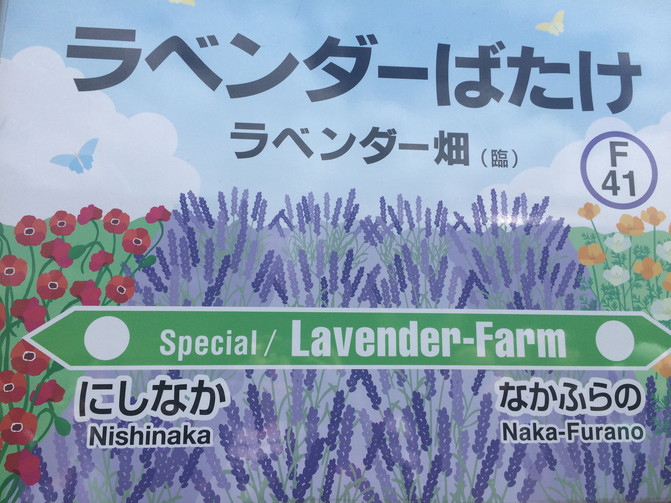 由于之前都查过时刻表,稍事休息,我们就搭上富良野美瑛慢车号的2号车11:52出发,到薰衣草花田站。这是一个只有夏天才停的站,下车后步行约7、8分钟就到了富田农场。北海道铁路局倒是挺为游客着想的,在每年夏季,他们特别推出这种富良野.美瑛慢车号,将车头粉饰成绿油油的,深褐色的车厢古色古香,天花板上还扎着一朵朵用草编织成的花。列车缓慢地行驶在田园美景中,从宽广的车厢可眺望秀丽辽阔的自然美景,途中还有列车员来发放“乘车证明书”呢!