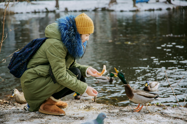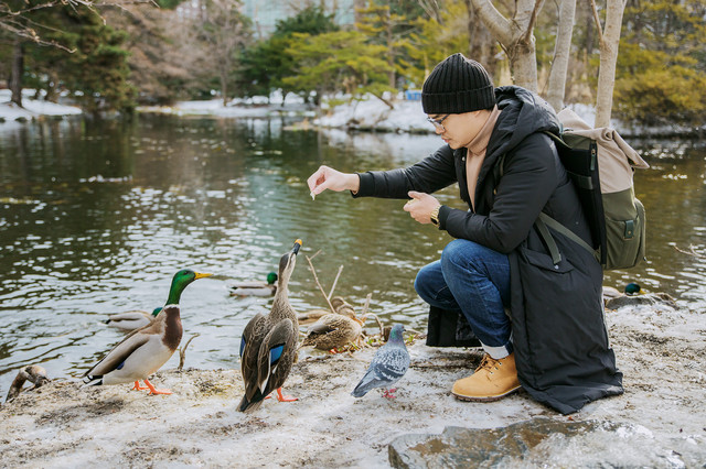 北海道 旧本厅舍外有个小湖,这里的鸭子和乌鸦成了“天敌”,相互争抢游客手上的面包,一点都不“害羞”。