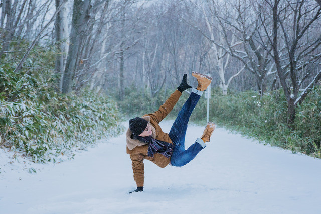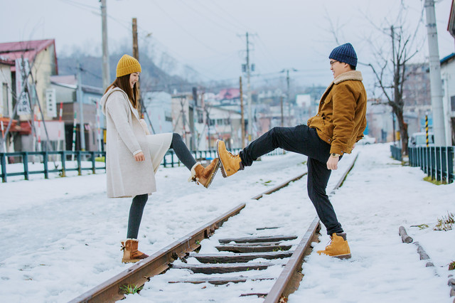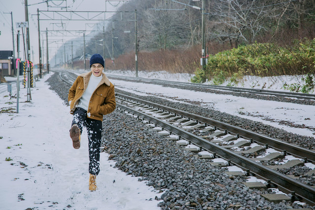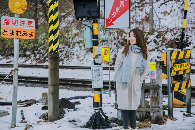 在去往船见坂的路上,经过了一条废弃的铁路,因为走的人比较少,积雪还没完全化掉,这里立刻成了我们的乐园。架起三脚架,各种POSE,各种打闹就开始拍起来了。