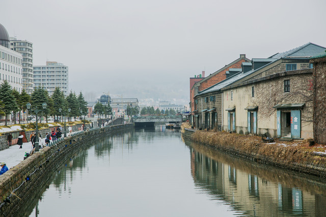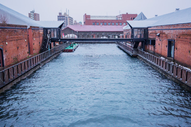 我们边吃着冰淇淋,边往 小樽 运河的方向走去。没有积雪的 小樽 运河好像少了点意思。当时我还一直跟小杜说,如果过两天从 函馆 回来下雪了,再过来 小樽 一趟吧,她连忙答应了。