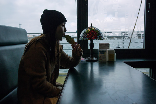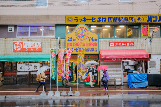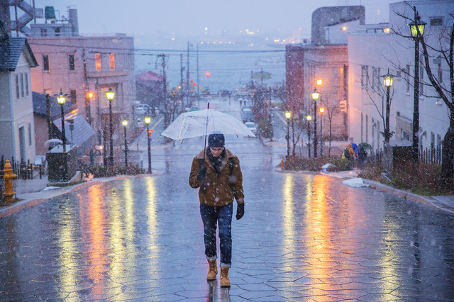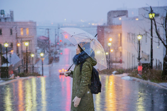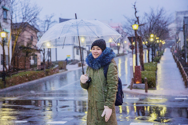 刚来 函馆 的那个晚上,是大风加上雨夹雪,在7-11买的透明雨伞没想到成了我们拍照最好的道具。