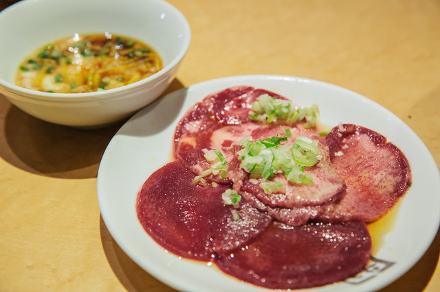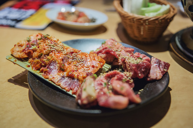 小吃只能让我们俩的胃口打开,接下来才进入我们的正餐环节。这家烤肉店我们已经是第二次来了,性价比非常高,而且味道还赞。两人吃的话推荐他们的两人的牛肉套餐,还有牛舌也不错,再来一杯冰啤酒下肚,爽!!!