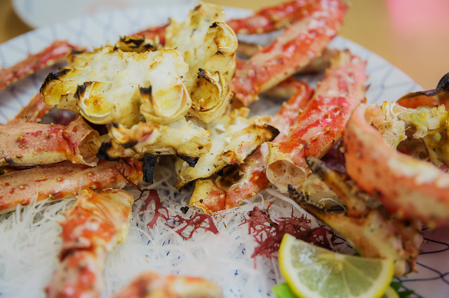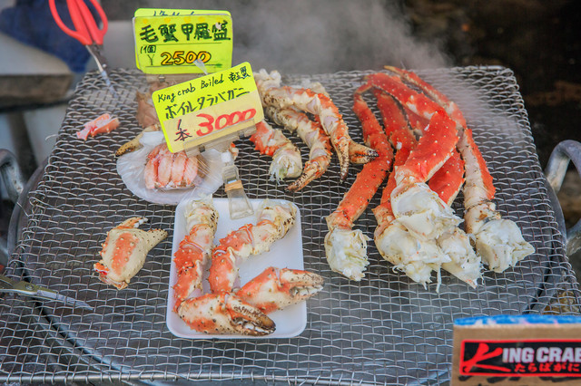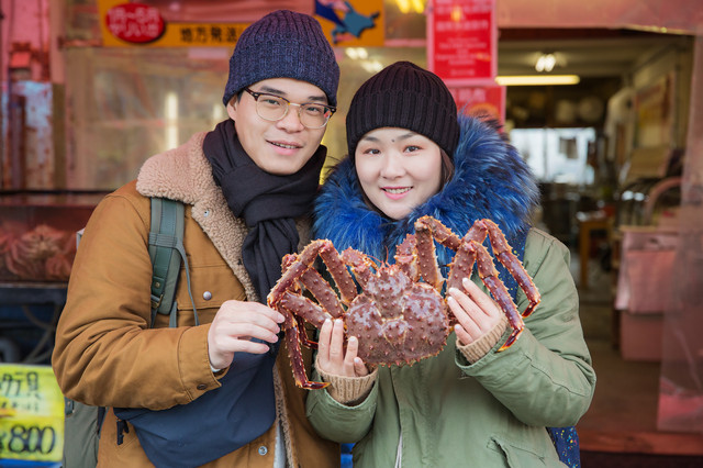 都说来了 函馆 ,就一定要品尝这里的海鲜。我们俩花了差不多1000块钱买下了这只帝皇蟹,心在滴血,但口水在流。