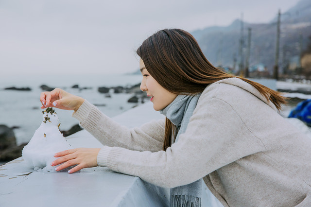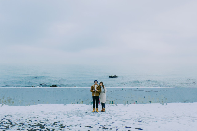 朝里,一个临近海边的小村庄,我们在这里堆起了第一个小雪人,而且和“它”牵手合了张影。
