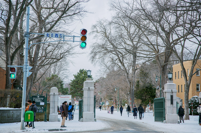 我们第一站来到了 北海道 大学,整个校园都是白茫茫一片,学生也开始往教室方向赶。每次走进大学里,都会回想起以前大学的美好时光,那种无忧无虑的感觉真好。