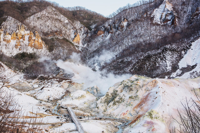 登别 所有酒店的温泉都是从地狱谷引流过去的,富含各种矿物质,像这样可以亲身看到源头的硫磺温泉真的少之又少了。