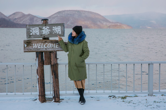 一下车我就知道我当初的选择是没错的, 登别 用一场大雪来迎接我们的到来。啊啊啊啊啊,终于盼来了啊,雪花飘飘的感觉真美。预定好的酒店还没来得及去找,就先把箱子里的厚衣服翻出来穿上,先拍照再说啊。
