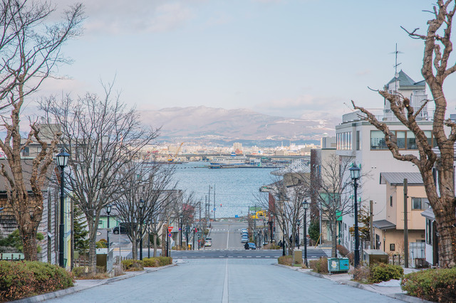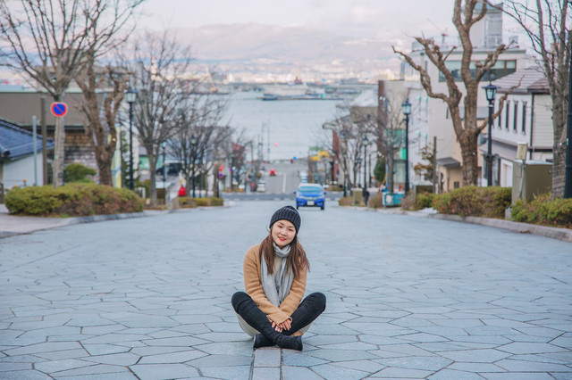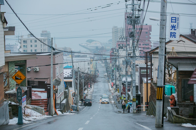 说到船见坂,首先想到的就是《情书》这部电影,一个镜头把这条通向海边的马路带火了。那天天气不太好,一直都是阴天,也没有下雪,一路的斜坡往上走,一回头便看到尽头的海,电影一幕幕仿佛就出现在眼前。