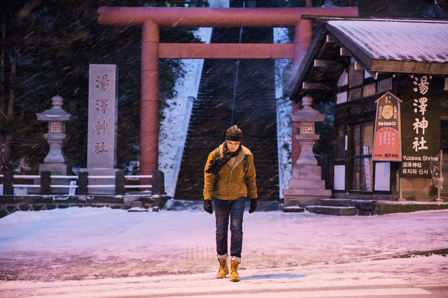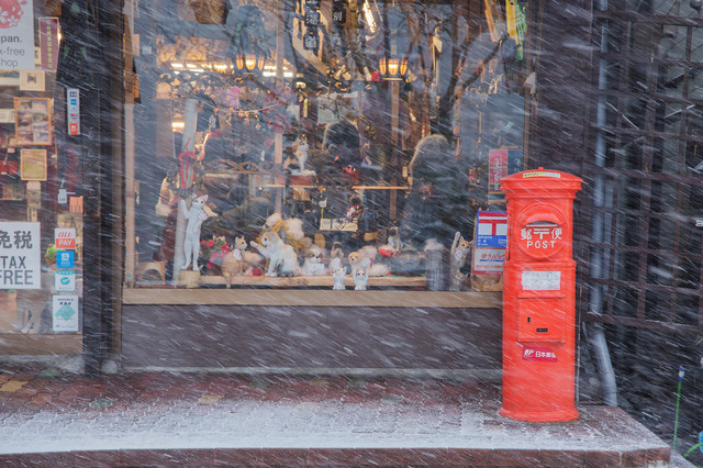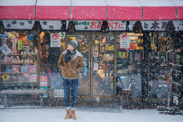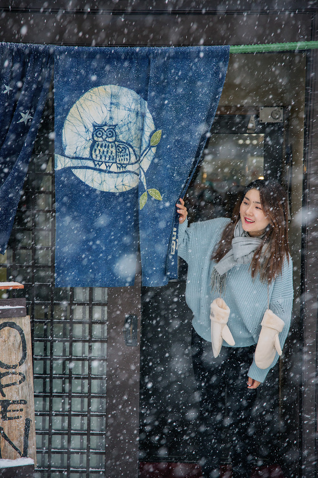 大风雪继续肆意的下,我们也继续我们的“表演”,这家复古的商店门前成了我们最好的背景,这画面美得有点像韩剧里的男女主角啊。说真的,在这样的风雪里拍照,一定要备好围巾和帽子,雪花可真会见缝插针。