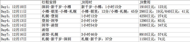 我们这次 北海道 蜜月之行总共花了8天7夜的时间,具体安排如下: