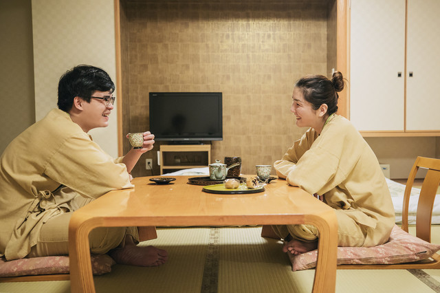 来登别怎么能错过真正的硫磺温泉,必须早晚一泡。回到房间,坐在日式榻榻米上喝一杯绿茶,品一口点心,一天就圆满了。