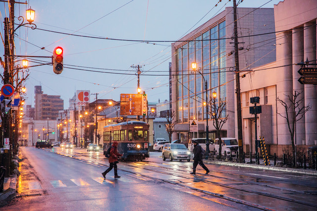 北海道 的冬天 日照 时间很短,再加上这几天天气还不好,来到 小樽 时已经天黑了。不过一切对于我来说都是新鲜的,拿起相机就是一顿狂拍。