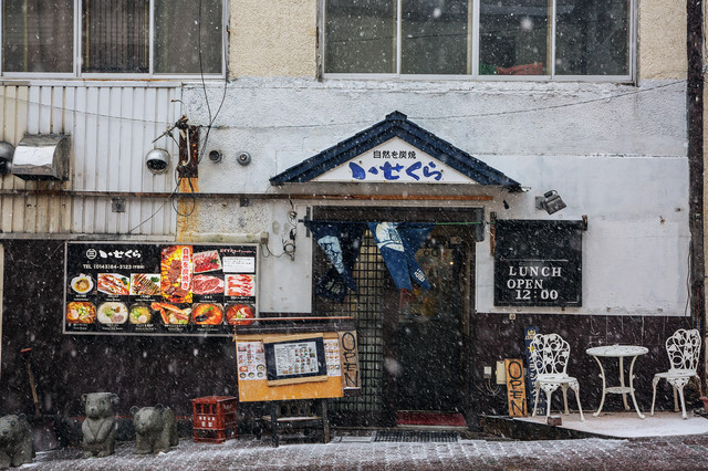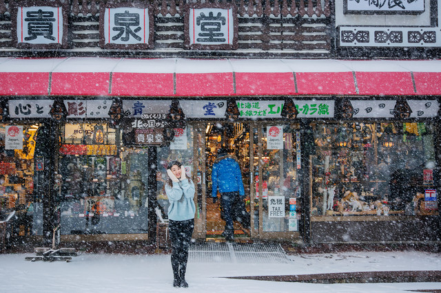 午饭后出来,竟然狂风大作,雪也越下越大,才刚出来一分钟,帽子和衣服都已经挂满了雪花。当然这对于我们来说完全不是困扰,简直就是上天的恩赐,终于盼来了一场像样的大雪,终于有点来到了冬季 北海道 的感觉了。