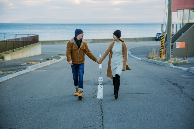 山上基本都逛了个遍,也提前踩了一下傍晚坐缆车的点,时间还早,我们干脆就跟着地图一直走到 函馆 的另一个海边来,具体名字忘记了,应该不是一个景点,毕竟一个游客都没有,但我就比较喜欢这样安静的地方,终于有时间享受一下“二人世界”。