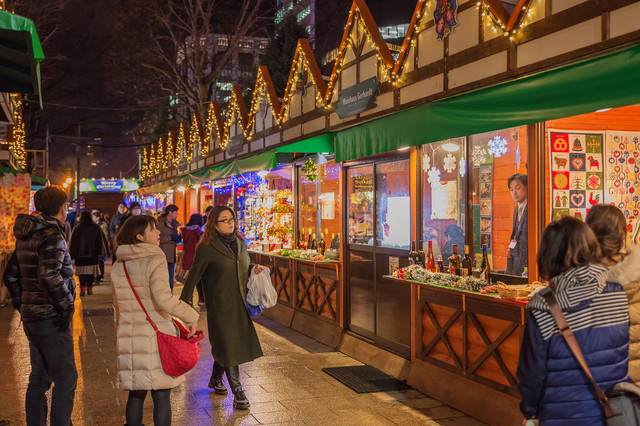 圣诞集市上主要卖各种圣诞主题的小饰品,还有各种 日本 当地美食。我觉得他们有一个做法还值得我们借鉴的,在买吃的时候他们会把餐具的费用给你算上一起收,等你吃完把餐具拿到回收台的时候,他们就会把餐具收的那部分钱退还给你,这样大家都会自觉收拾好餐具,减少工作量的同时还干净卫生。