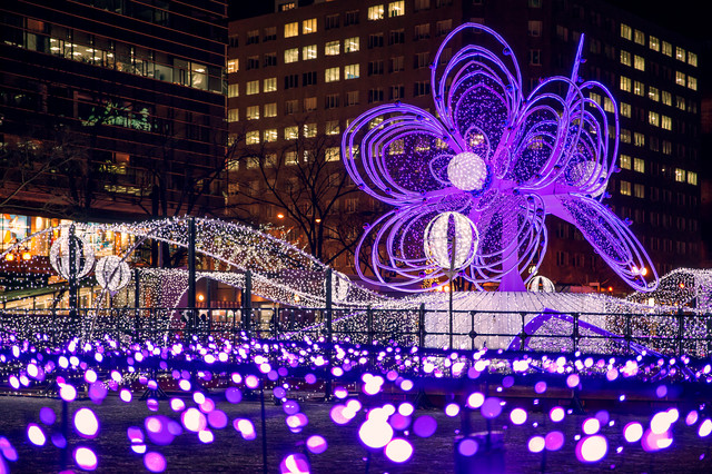 本来打算买完东西就回酒店,然后出去觅食的,毕竟那些化妆品提起来还挺费劲的。但途中看到了大通公园亮起了花灯,还有圣诞集市。为了欣赏花灯,我们来回徒步了差不多半个小时,主要还提着很重的东西,也是够拼的。