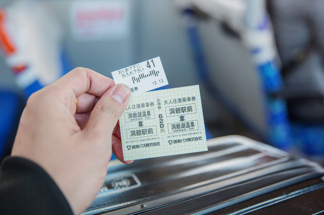 关于巴士票:在JR 登别 站出站后就可以通过自助购票机购买,也可以到人工售票口购买。因为我们明天需要回到这里坐JR到 洞爷湖 ,所以直接买的来回,一起640日元(如果需要来回的,直接购买来回的,分开购买价格会贵一点)。从后门上巴士的时候,记得拿整理券(用来证明你的乘坐起点的),到站后车票和整理券一起放进回收口就ok了。