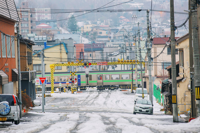 从南 小樽 出来,可谓一步一景,远处复古的出租车,和《情书》同款的邮差,穿过十字路口的列车,每一个画面我都爱得不行。