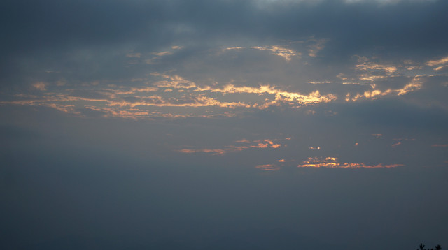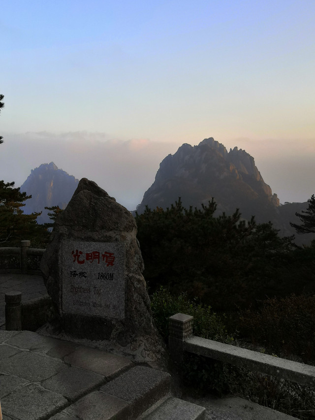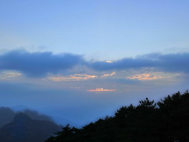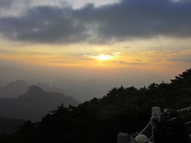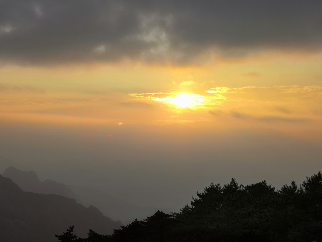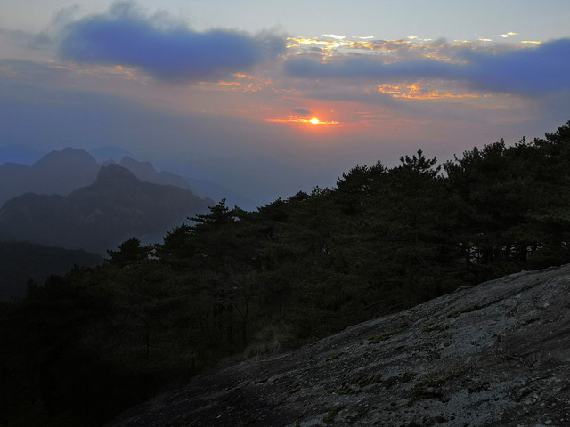 在光明顶看日落,西面天边云彩较多,效果不是很好。