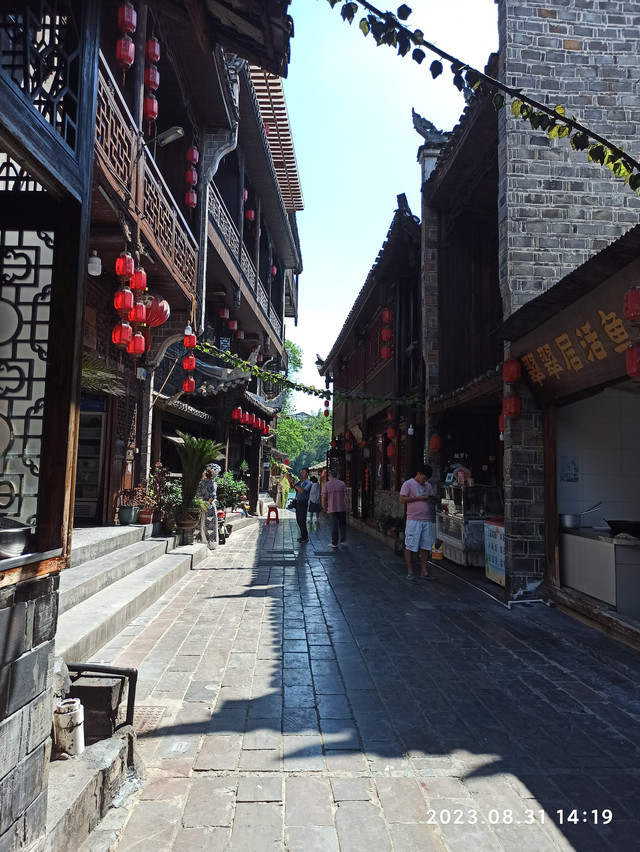 次日清晨,我们吃完早餐,再次把芙蓉镇逛了一圈。明媚阳光下的古镇和昨夜绚烂灯光下古镇似乎有些不同,但阿李更喜欢阳光下的芙蓉镇,因为它更清丽,更有烟火气。