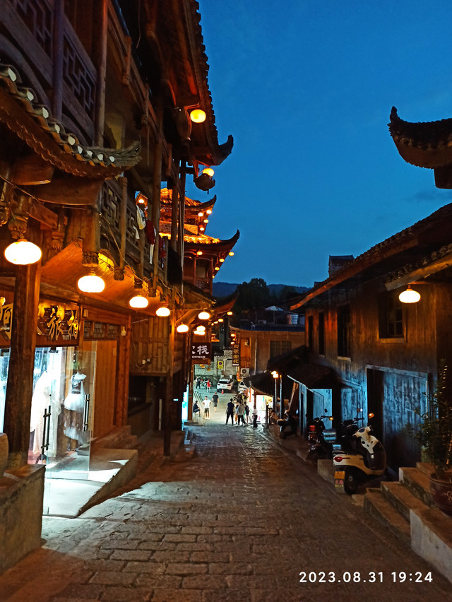 我们安排好住宿,买好了门票,吃过了晚餐(店家给我们赠送了一盘当地美食米豆腐,味道不错),天渐渐黑了,各处彩灯亮了起来,整个小镇变成了一个五彩缤纷的世界。我们走在芙蓉镇的青石板街上,饱览这里美妙的夜景。