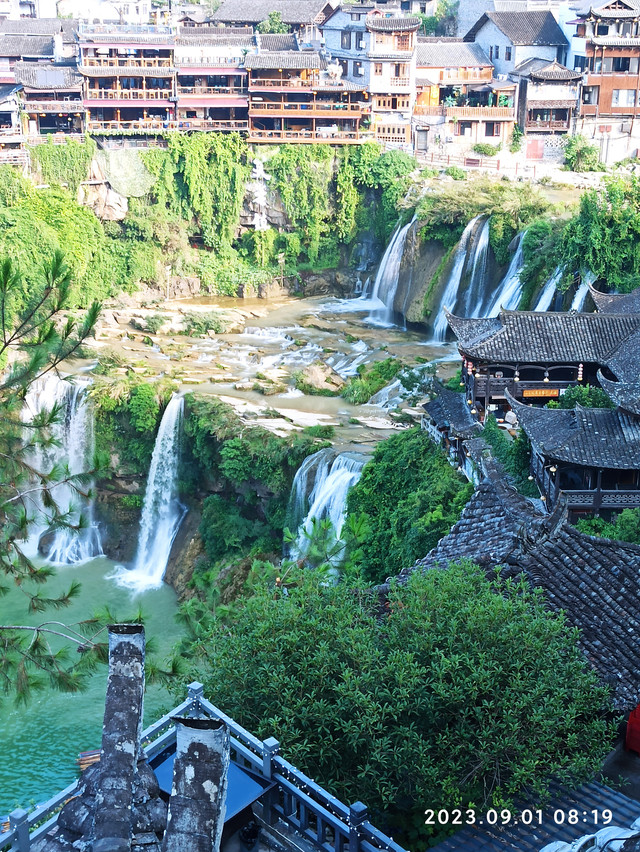 逛完大瀑布,已近九点,景区的文艺演出即将开始。我们随其他游客走进剧场,选好座位,欣赏了一场名为《花开芙蓉·毕兹卡的狂欢》的歌舞表演,领略了土家族文化的魅力。因为阿李实在太困了,没等演出结束,我们就走出剧场,回酒店休息了。