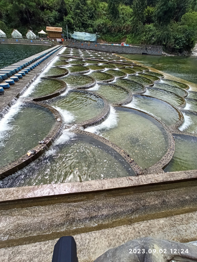 游完凤滩水电站,我们就去了明溪口村金碗水鱼鳞坝。