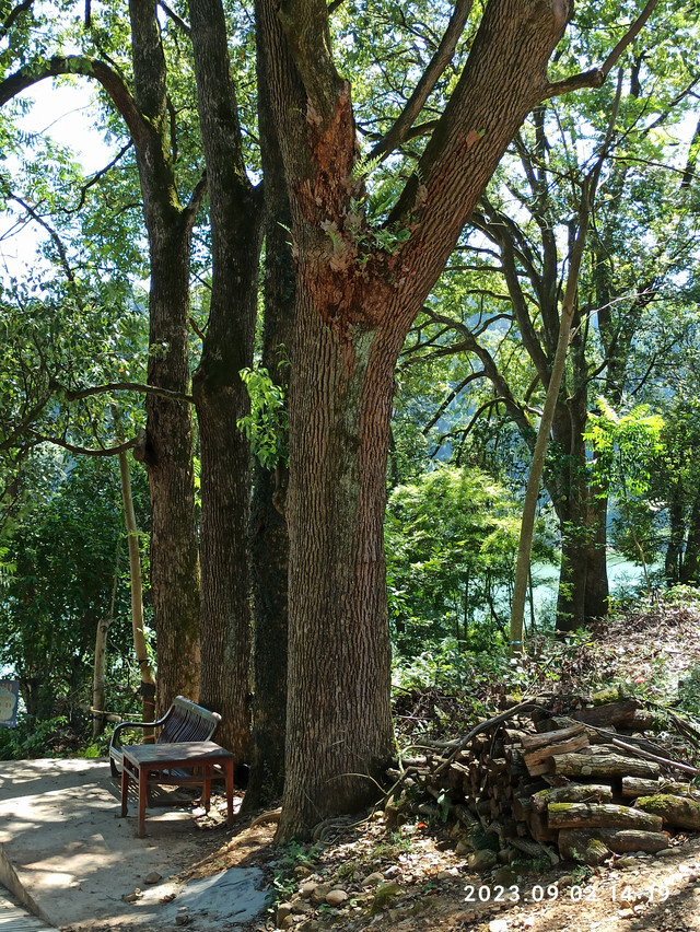 确实,这里环境很不错:农庄被高大的樟树林拥在怀里,虽然外面艳阳高照,但我们所坐的地方没晒到一点太阳,碧绿的酉水就在农庄外静静流淌,不时给我们送来阵阵凉风。这里的饭菜也不错:在我们讲了两个小时白话后,下午四点,老板娘给我们端上很有地方特色的饭菜,让我们吃得很是尽兴。