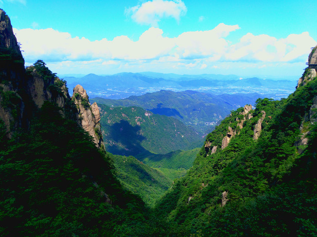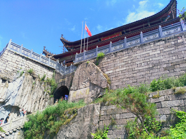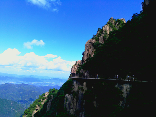 从右边的阶梯爬上去,拜了天台寺,穿过一线天,登上了后面的山顶,印了那么一句话:一览众山小。从天台到花台其实是可以过去的,但是徒步的话要3-4个小时阶梯山路,果断下山,从左边绝壁处穿过山洞,拾级而下。