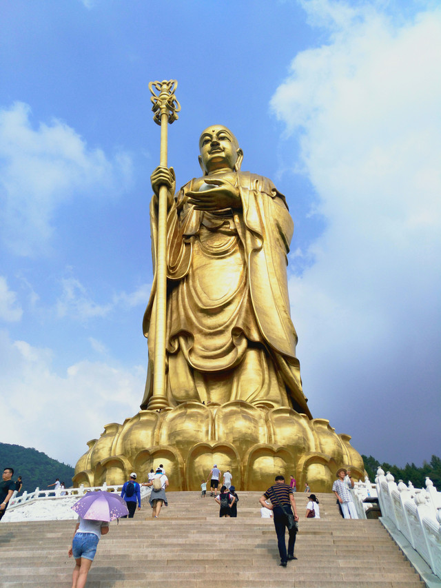 来到99米大佛山脚下,看到了谛听大铜像,大佛真的很壮观,下午去的话阳光正好洒在大佛金身上,金光灿灿