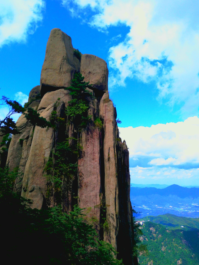 在上面看山下,真的是好漂亮,天空蓝得像块蓝宝石,而朵朵白云就是一团团棉花,拍了好多照片。