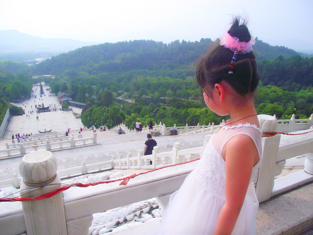 行程安排的满满的,在九华街坐景区大巴,不巧遇上了堵车,导游小妹说这也是她第一次碰到这样的事,女儿还有点晕车。坐索道到天台,之后还要爬N个阶梯,上了古拜经台,拜了地藏王菩萨的大脚印,这大脚印据说是当年地藏王菩萨诵经留下的,是要去踩一踩的,这其间碰到一帮福建上香的老太太团,真是没素质,不好好的排队,就一直往前挤,我女儿硬是给挤下了脚印台,外面的鞋子也给踩得不像样。上了天台寺脚下,在石刻那歇了会,