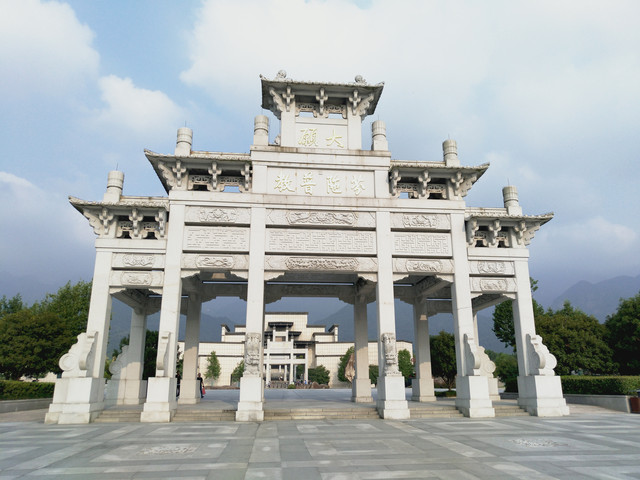 放好行李,游玩就正式开始,第一站到九华山大愿文化园,穿过牌楼