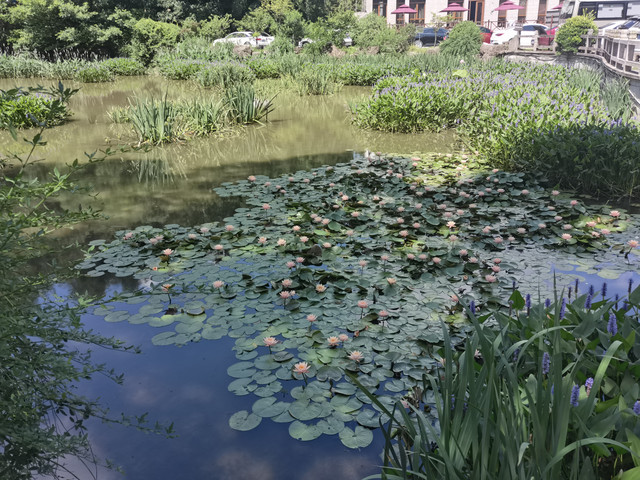 一路走下山来,经过聚龙大酒店门前,发现粉色的睡莲开了,感觉没有去年多啊。顺着九华街一路看来,以月身宝殿作为结束。