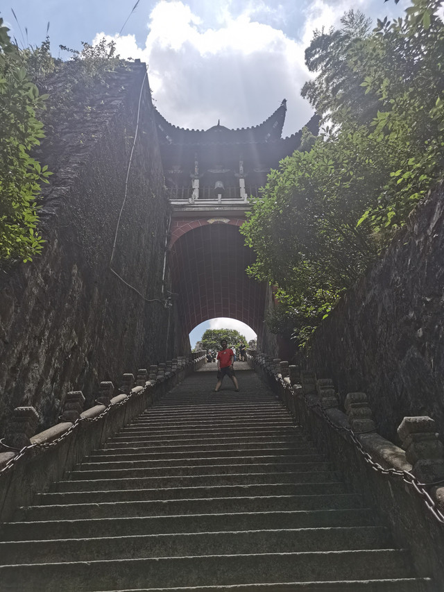 九华街上找个饭店吃完饭,继续沿九华老街走着。这是九华老街,化城寺门口。往日摩肩接踵的人群,现在也不知道去哪里了,也挺好的,至少拍照时不用担心别人误入你的镜头。