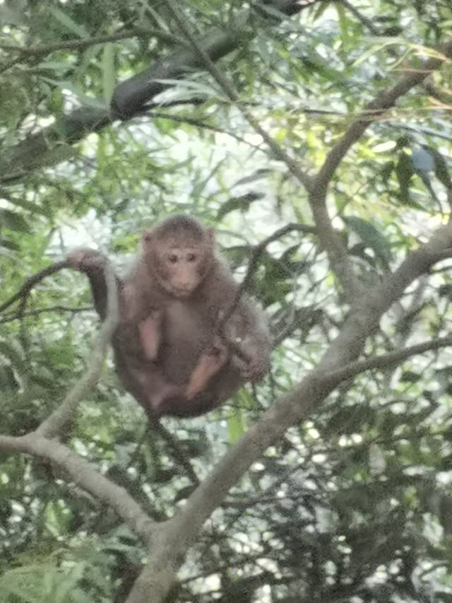 早上在酒店吃了早饭后,我们将包裹寄存在酒店这里了。坐着缆车上到百岁宫。路遇几只顽皮的猴子。
