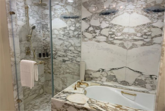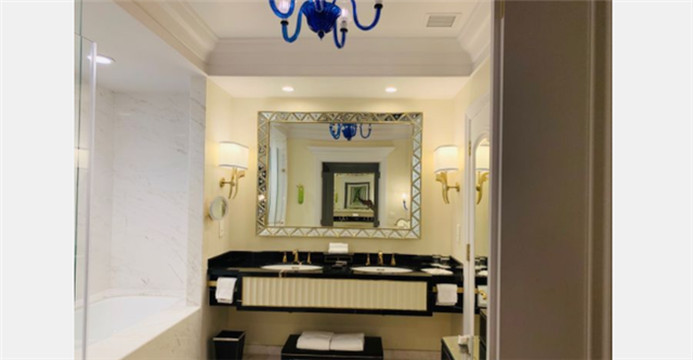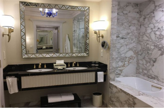 拥有超大浴缸和淋浴设备的奢华大理石浴室干净又明亮,随便怎么拍都好看。卫生间做了干湿分离,还有梳妆台。洗浴用品也很好用,有好闻的香味,浴袍的材质也不是那种很粗糙的,很柔软,穿着很合身,总体来说还是蛮不错的。