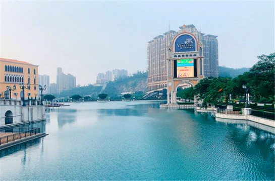 一踏入澳门的土地,就看到威尼斯人酒店的服务员高举着牌子招呼着酒店的客人到外面乘坐酒店的免费巴士,服务很周到呢!听说威尼斯人酒店旁边的风景也是很赞的,所以到达酒店后的第一件事办理check in,让贴心的酒店服务生帮把箱子送到房间,迫不及待的去酒店附近打卡了,绝对不能辜负这大好时光!沿河行走,酒店与周围的树木、街道都仿佛融成一体,不管从哪个角度看,都构成一副画。特别要说的是,威尼斯人酒店的设计也相当独特,西方线条的流畅和色彩搭配与自然环境相得益彰,丝毫不觉得突兀。